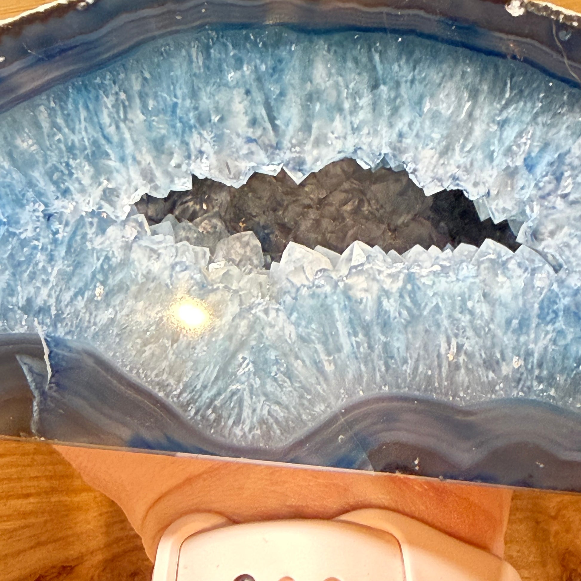 This is a unique, one-of-a-kind piece. The weight, shape, and crystal formation shown are specific to this exact Agate Geode.